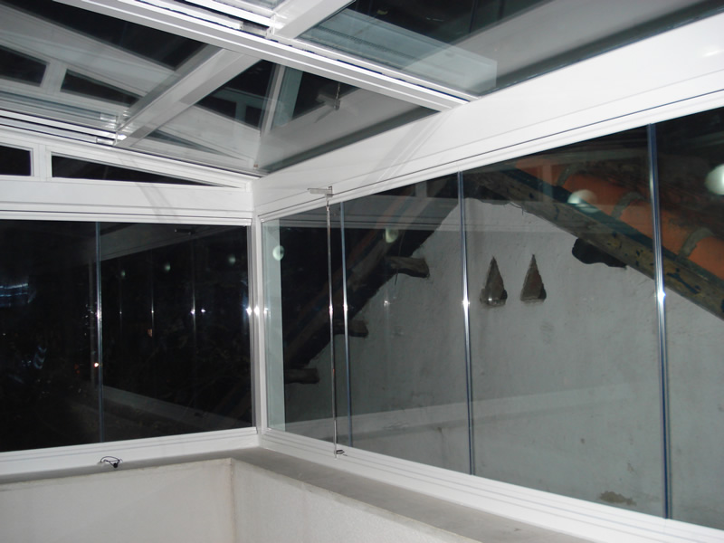 Amplio y luminoso este tipo de cerramiento esta fabricado con la minima cantidad de perfil de aluminio, llevando sólo un soporte en la parte de arriba o de abajo según el gusto del consumidor.