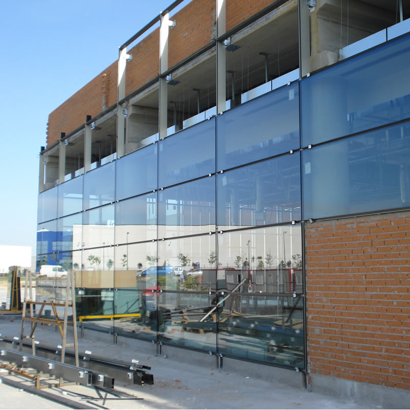 Muro cortina El muro cortina es una fachada de cristal ligera que se instala independientemente de la estructura resistente del edificio. Un muro cortina está diseñado para resistir la fuerza del viento, así como su propio peso, y transmitirla a los forjados